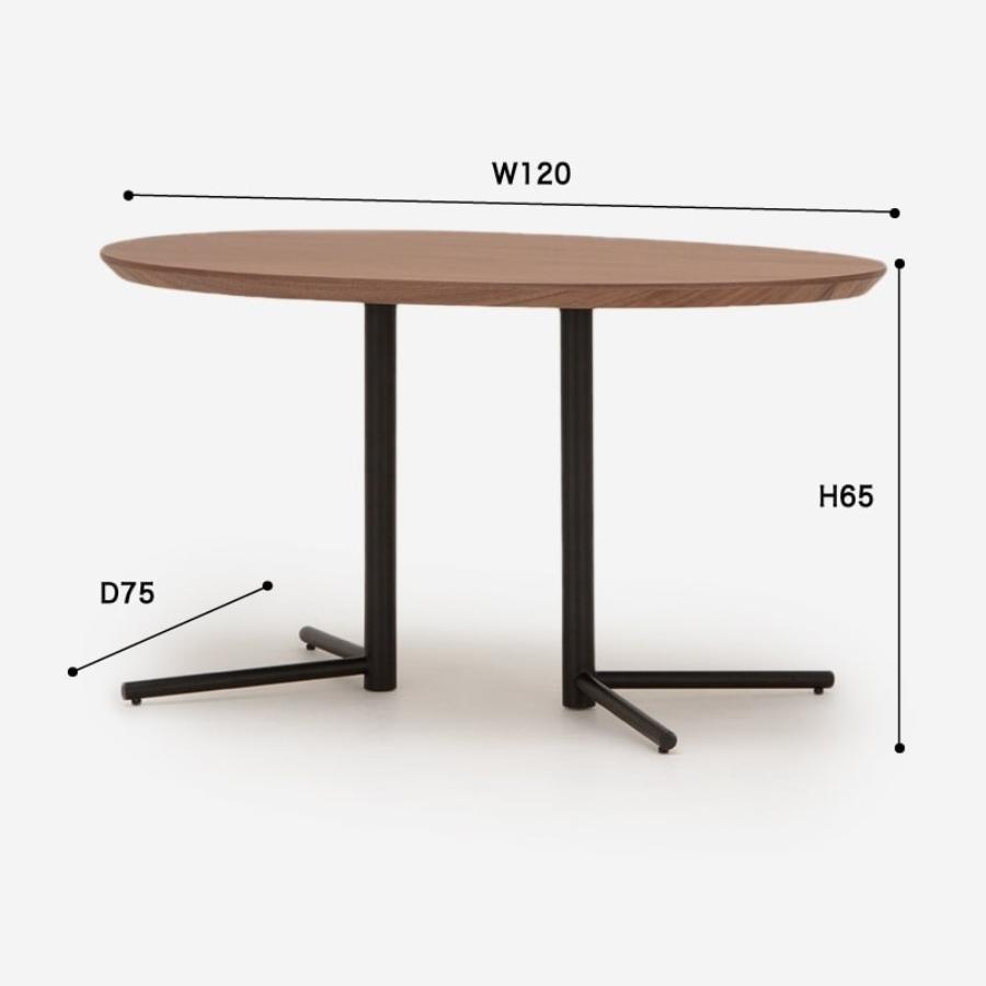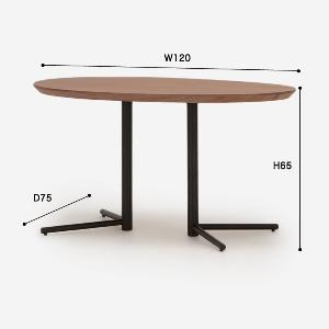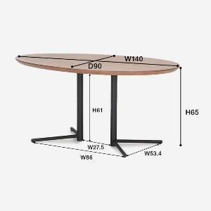 ビッグサイドテーブルはソファに合わせて使いやすいよう、高さ65cmと低めに設定されています。たまご型の天板と脚の形が中央にあることで、色々な方向からテーブルを囲みやすくなっています。