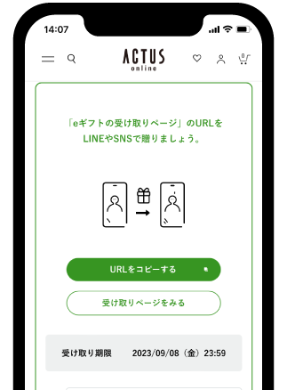 ※アクタスのeギフトはのシステムを使用しています。