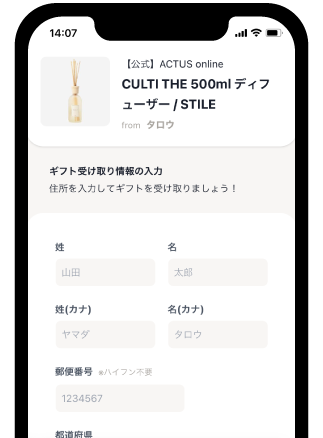 贈り先の方は受け取り用URLから住所と配送日時を設定すると