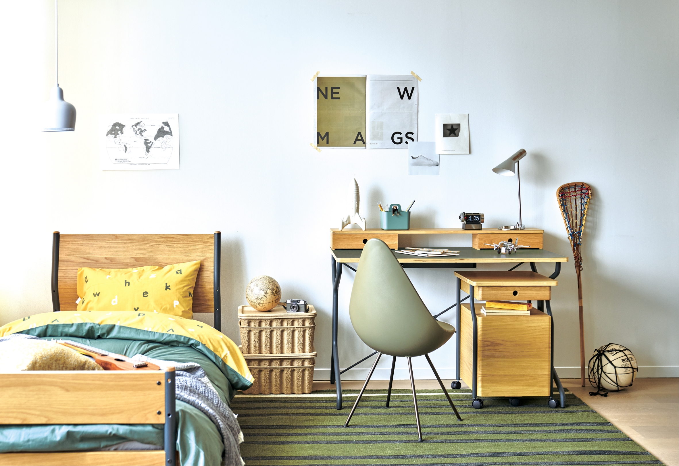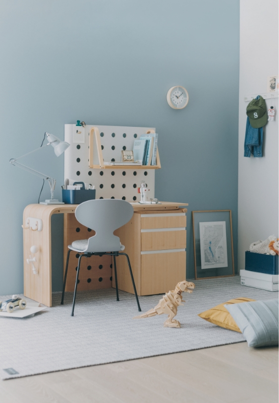 子どもの成長を受け止める大人サイズのベッドマットレスなど。デスク周辺のアイテムも充実しています。